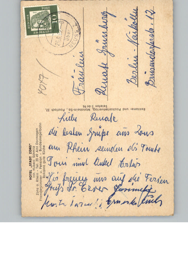 31132877 Zons Hotel Stadt Zons postalisch nicht gelaufen KatCode: 11110005162004