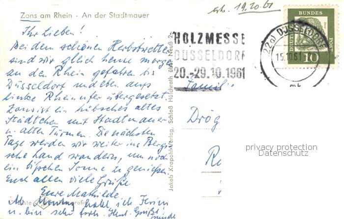 73758651 alte Postkarte Zons Rhein An der Stadtmauer postalisch gelaufen Erhaltung siehe scans [WerneD78] KatCode: 11110005162004