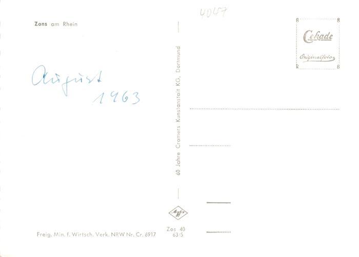 73863790 Zons Rhein NRW Fliegeraufnahme postalisch nicht gelaufen Erhaltung siehe scans [FriedD77] Frie Katcode 11110005162004