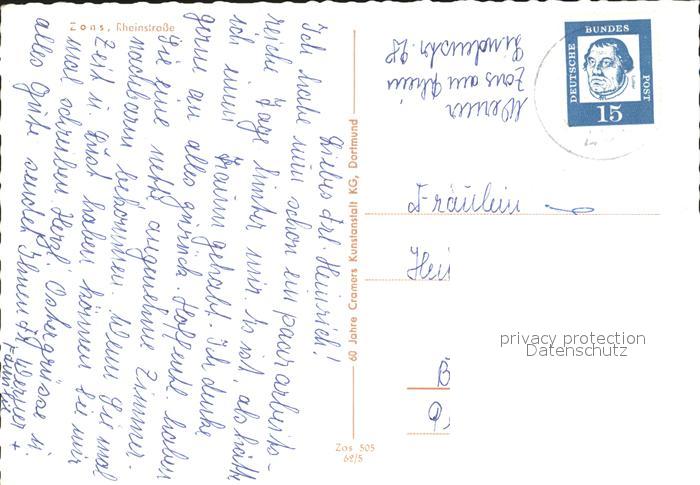 72106798 alte Postkarte Zons Rhein NRW Rheinstrasse postalisch gelaufen Erhaltung siehe scans KatCode: 11110005162004