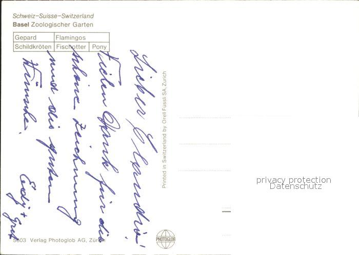 Zoo Basel Gepard Flamingos Schildkroeten Fischotter Pony postalisch nicht gelaufen Erhaltung siehe scans