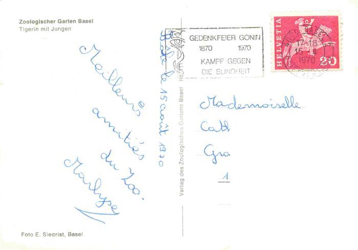 74027228 alte Postkarte Zoo Gardin Zoologique– Basel Tiegerin Junge postalisch gelaufen Erhaltung siehe scans [IrynaD87] KatCode: 22540000004400