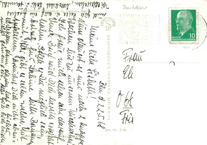 74007189 alte Postkarte Zoo Gardin Zoologique– Berlin Hartmanns Berazebra postalisch gelaufen Erhaltung siehe scans [IrynaD87] KatCode: 22540000004400