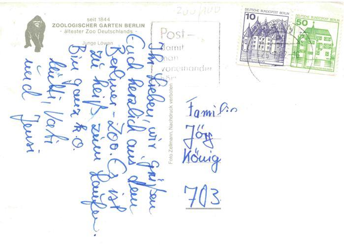 74007168 alte Postkarte Zoo Gardin Zoologique– Berlin Junge Loewen postalisch gelaufen Erhaltung siehe scans [IrynaD87] KatCode: 22540000004400