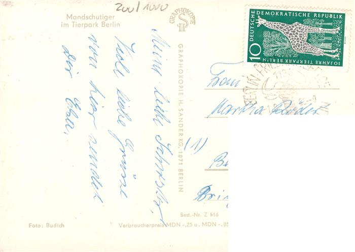 alte Postkarte Zoo Gardin Zoologique– Berlin Mandschutieger postalisch gelaufen Erhaltung siehe scans [IrynaD87]