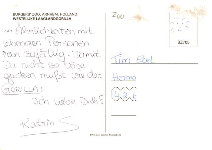 73939174 alte Postkarte Zoo Gardin Zoologique– Burgers Arnhem Westelijke Laaglandgorilla postalisch gelaufen Erhaltung siehe scans [IrynaD87] KatCode: 22540000004400