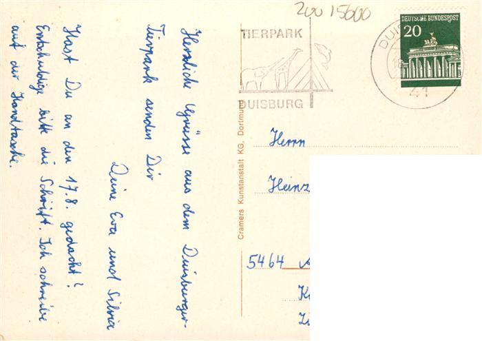 73942051 alte Postkarte Zoo Gardin Zoologique– Duisburg Eisbaer Giraffe Delphine Elefanten Tieger postalisch gelaufen Erhaltung siehe scans [IrynaD87] KatCode: 22540000004400