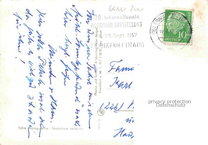 74077314 alte Postkarte Zoo Gardin Zoologique– Frankfurt Loewe Schimpanse Nashorn Elefant Seeloewe postalisch gelaufen Erhaltung siehe scans [IrynaD87] KatCode: 22540000004400