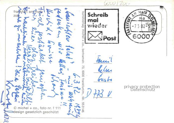 74051602 alte Postkarte Zoo Gardin Zoologique– Frankfurt Main Flamingo Eule postalisch gelaufen Erhaltung siehe scans [SanaeD93] KatCode: 22540000004400