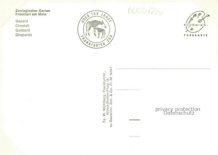 74051600 Zoo Gardin Zoologique– Frankfurt Main Gepard postalisch nicht gelaufen Erhaltung siehe scans [SanaeD93] KatCode: 22540000004400
