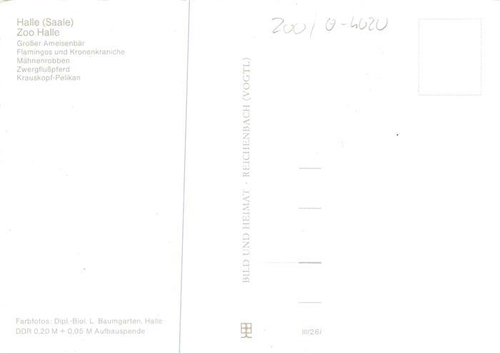 74036099 Zoo Gardin Zoologique– Halle Ameisenbaer Flamingo Pelikan postalisch nicht gelaufen Erhaltung siehe scans [IrynaD87] KatCode: 22540000004400