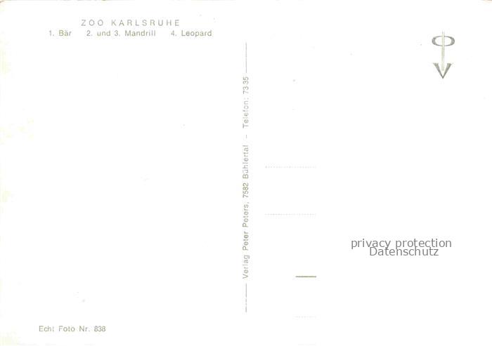74017325 Zoo Gardin Zoologique– Karlsruhe Baer Mandrill Leopard postalisch nicht gelaufen Erhaltung siehe scans [IrynaD87] KatCode: 22540000004400