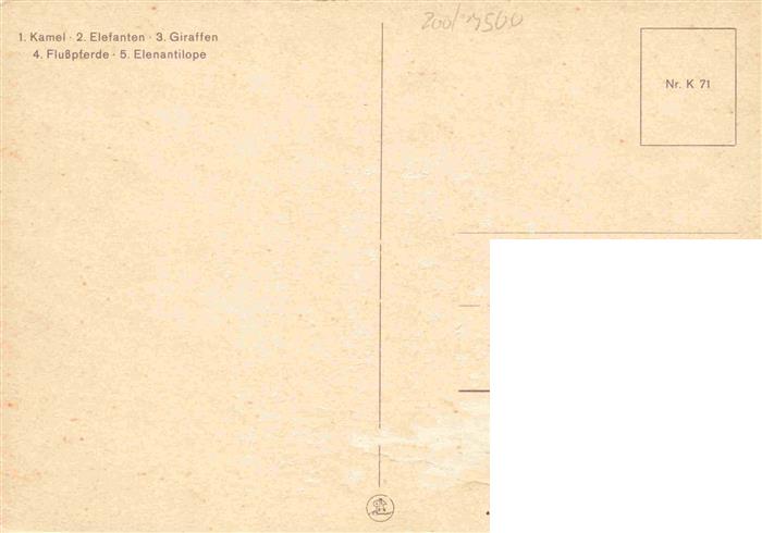 74007166 Zoo Gardin Zoologique– Karlsruhe Kamel Elefant Giraffe Flusspferd Elenantilope postalisch nicht gelaufen Erhaltung siehe scans [IrynaD87] KatCode: 22540000004400