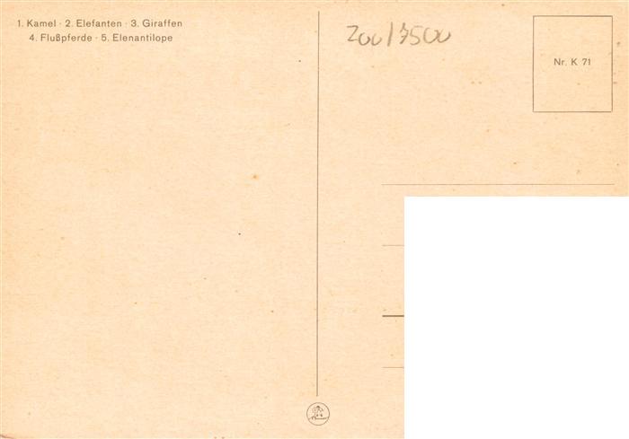 73940501 Zoo Gardin Zoologique– Karlsruhe Kamel Elefant Giraffe Flusspferd postalisch nicht gelaufen Erhaltung siehe scans [IrynaD87] KatCode: 22540000004400