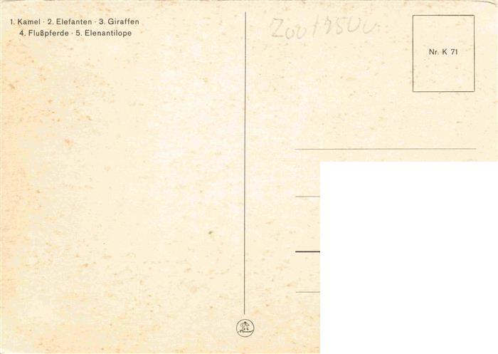 74007161 Zoo Gardin Zoologique– Karlsruhe Kamel Elefant Girafffe Flusspferd Elenantilope postalisch nicht gelaufen Erhaltung siehe scans [IrynaD87] KatCode: 22540000004400