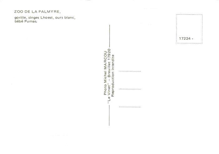74030184 Zoo Gardin Zoologique– la Palmyre Gorille singes ours Pumas postalisch nicht gelaufen Erhaltung siehe scans [SanaeD93] KatCode: 22540000004400