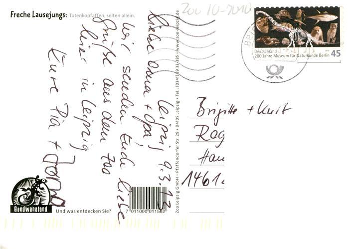 73940098 alte Postkarte Zoo Gardin Zoologique– Leipzig Totenkopfaffen Lausejungs postalisch gelaufen Erhaltung siehe scans [IrynaD87] KatCode: 22540000004400