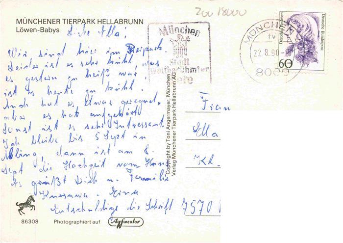 74036107 alte Postkarte Zoo Gardin Zoologique– Muenchen Loewen Babys postalisch gelaufen Erhaltung siehe scans [IrynaD87] KatCode: 22540000004400