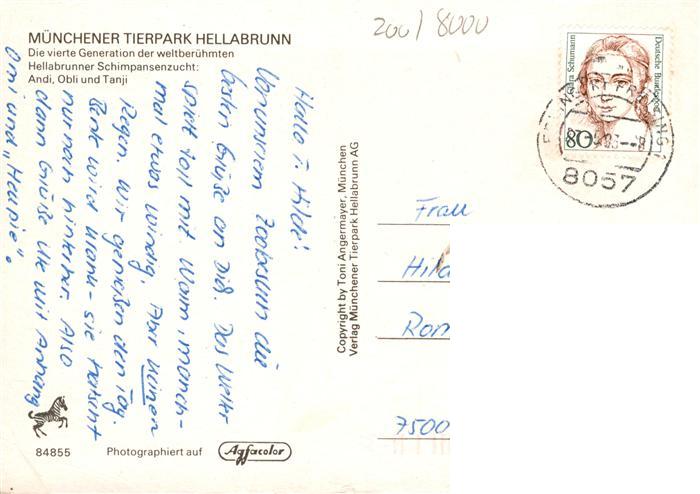 73941012 alte Postkarte Zoo Gardin Zoologique– Muenchen Schimpansen Andi Obli Tanji postalisch gelaufen Erhaltung siehe scans [IrynaD87] KatCode: 22540000004400