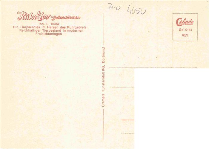 74036105 Zoo Gardin Zoologique– Ruhr Gelsenkirchen Nashorn Eisbaer Elefant Giraffe postalisch nicht gelaufen Erhaltung siehe scans [IrynaD87] KatCode: 22540000004400