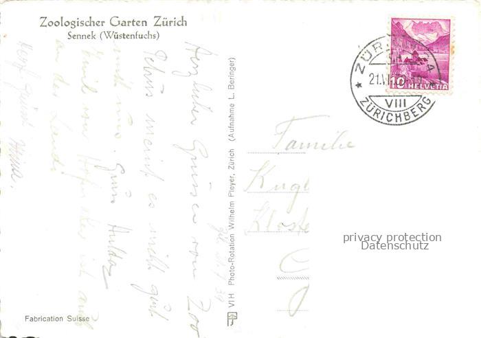 74050625 Zoo Gardin Zoologique– Sennek Wuestenfuchs Zuerich postalisch nicht gelaufen Erhaltung siehe scans [SanaeD93] KatCode: 22540000004400