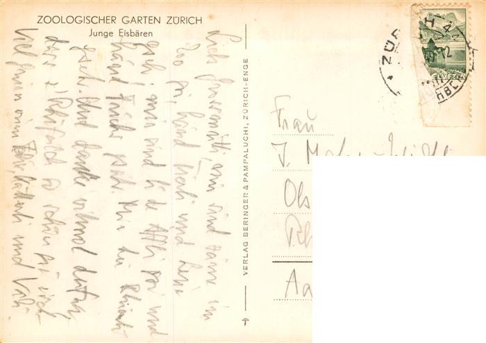 74036784 alte Postkarte Zoo Gardin Zoologique– Zuerich Junge Eisbaeren postalisch gelaufen Erhaltung siehe scans [IrynaD87] KatCode: 22540000004400