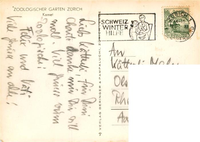 74036783 alte Postkarte Zoo Gardin Zoologique– Zuerich Kamel postalisch gelaufen Erhaltung siehe scans [IrynaD87] KatCode: 22540000004400