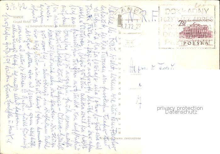 old postcard Zoppot Sopot Grand Hotel postalisch gelaufen Erhaltung siehe scans