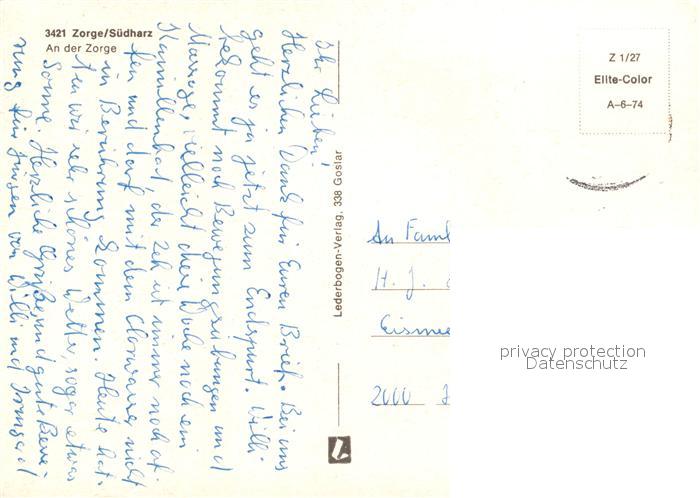 73129932 alte Postkarte Zorge An der Zorge postalisch gelaufen Erhaltung siehe scans [KathaD81] KatCode: 11110003156016