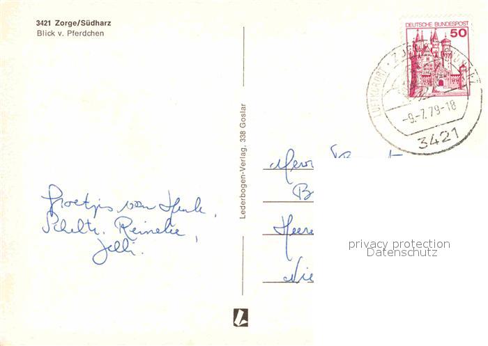 72892936 alte Postkarte Zorge Blick vom Pferdchen postalisch gelaufen Erhaltung siehe scans [WerneD78] KatCode: 11110003156016