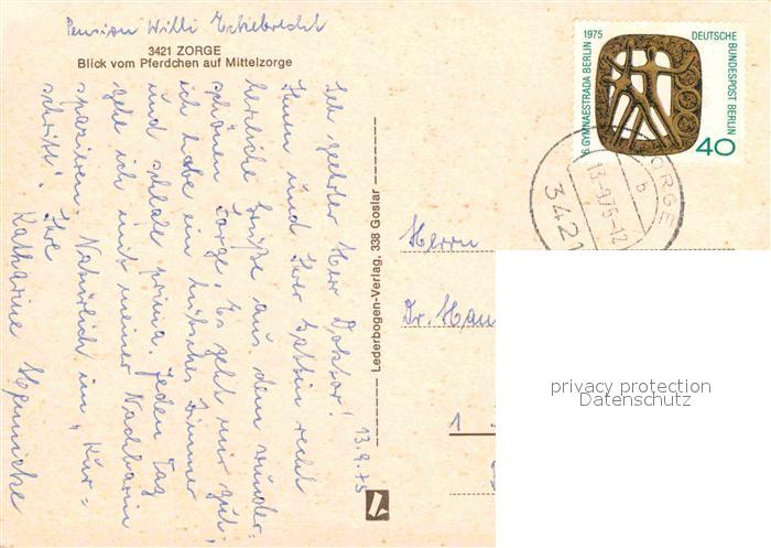 72904683 alte Postkarte Zorge Blick vom Pferdchen auf Mittelzorge postalisch gelaufen Erhaltung siehe scans [AndreD76] KatCode: 11110003156016