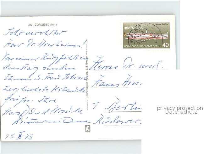 72255217 alte Postkarte Zorge Blick vom Pferdchen und der Fuchsburg Kurpark Kurhaus Wehr am Glockenturm postalisch gelaufen Erhaltung siehe scans KatCode: 11110003156016
