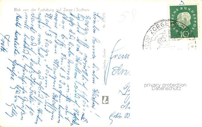 73839405 alte Postkarte Zorge Blick von der Fuchsburg postalisch gelaufen Erhaltung siehe scans [FriedD77] KatCode: 11110003156016