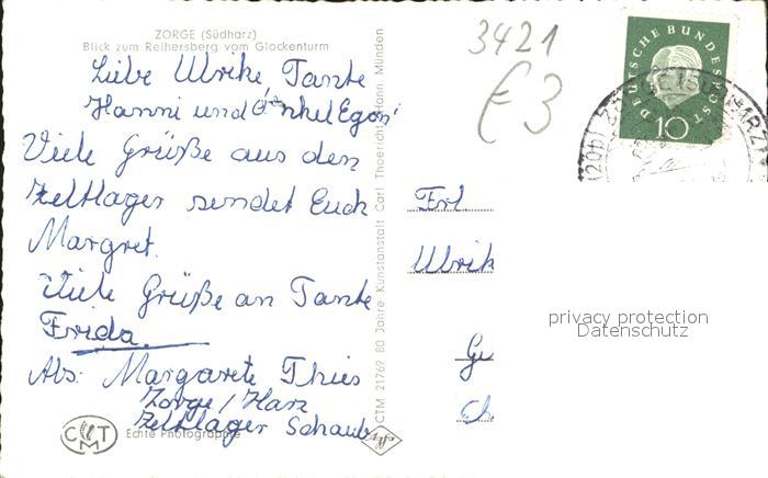 72354043 alte Postkarte Zorge Blick zum Reihersberg vom Glockenturm postalisch gelaufen Erhaltung siehe scans KatCode: 11110003156016