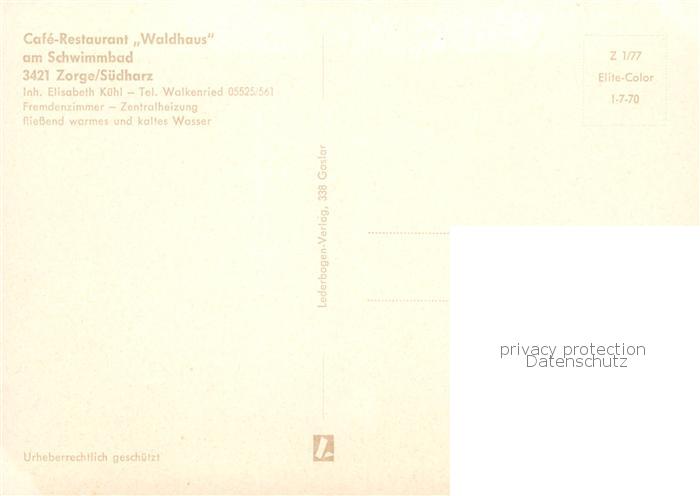73865534 Zorge Cafe Restaurant Waldhaus Freibad postalisch nicht gelaufen Erhaltung siehe scans [FriedD77] KatCode: 11110003156016