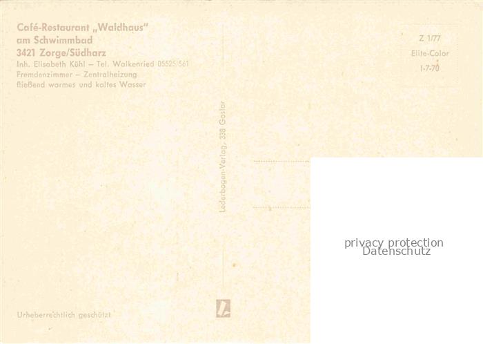 74043390 Zorge Harz Café Restaurant Waldhaus Schwimmbad postalisch nicht gelaufen Erhaltung siehe scans [FriedD77] KatCode: 11110003156016