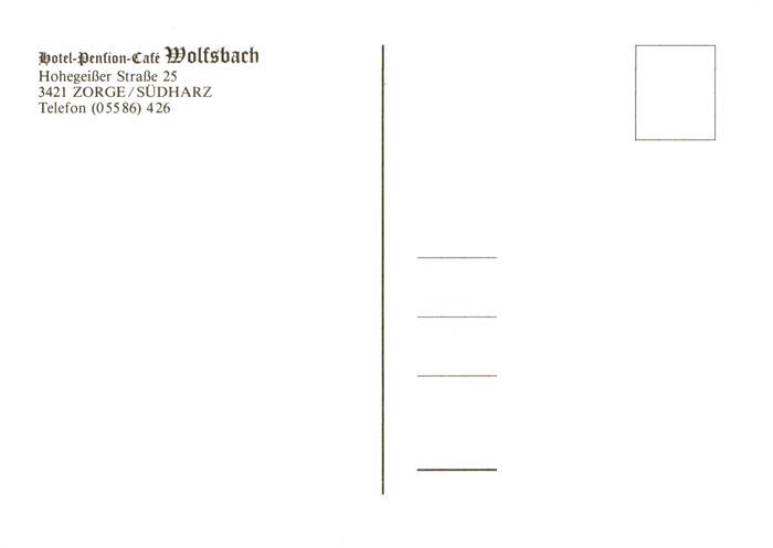 73905132 Zorge Harz Hotel Pension Cafe Wolfsbach postalisch nicht gelaufen Erhaltung siehe scans [FriedD77] KatCode: 11110003156016