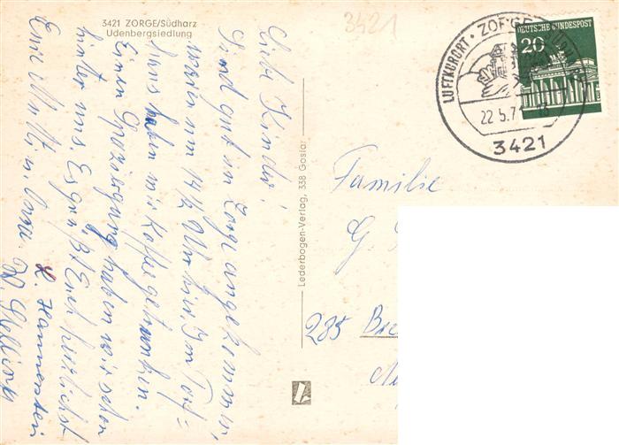 73949357 alte Postkarte Zorge Harz Udenbergsiedlung postalisch gelaufen Erhaltung siehe scans [WerneD78] KatCode: 11110003156016
