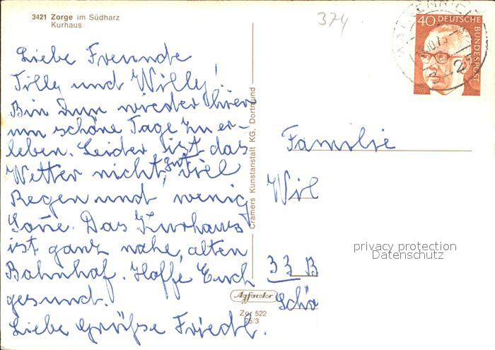 72613674 alte Postkarte Zorge Kurhaus postalisch gelaufen Erhaltung siehe scans [WerneD78] KatCode: 11110003156016