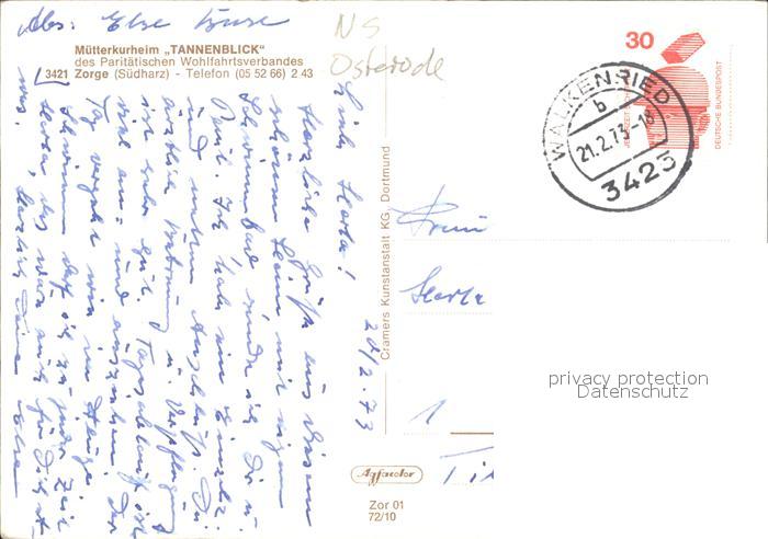 72922133 alte Postkarte Zorge Muetterkurheim Tannenblick postalisch gelaufen Erhaltung siehe scans [MatthD68] KatCode: 11110003156016