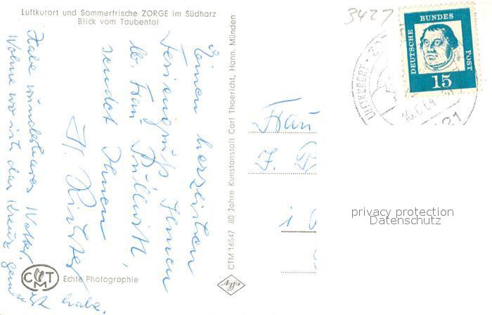 43349223 alte Postkarte Zorge Panorama postalisch gelaufen Erhaltung siehe scans [KathaD81] KatCode: 11110003156016