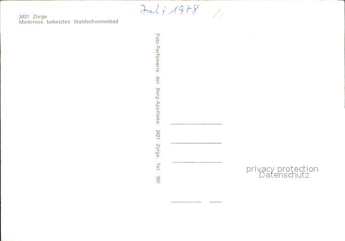 72323850 Zorge Waldschwimmbad postalisch nicht gelaufen Erhaltung siehe scans KatCode: 11110003156016