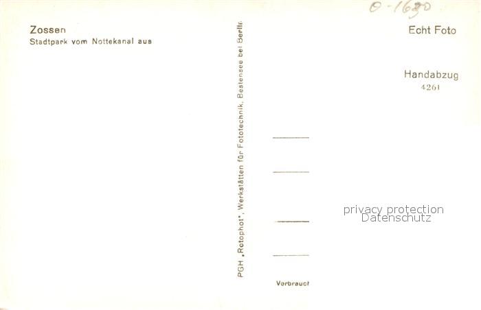 43368384 Zossen Brandenburg Stadtpark vom Nottekanal aus Handabzug postalisch nicht gelaufen Erhaltung siehe scans [FriedD77] KatCode: 11110012072477