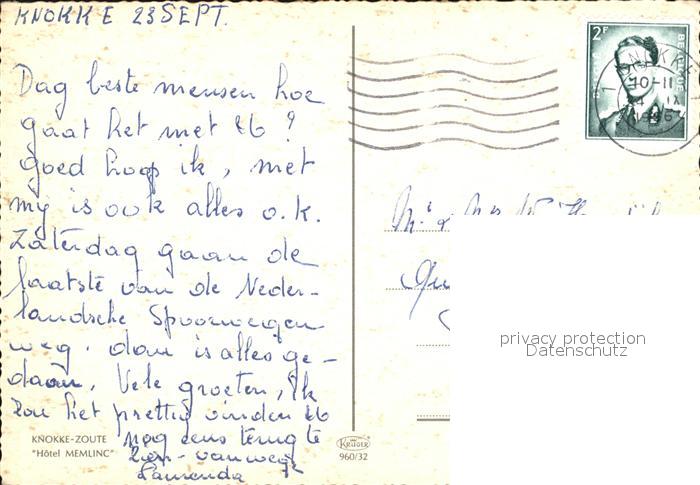 72421623 carte postale Zoute Knokke Hotel Memlinc postalisch gelaufen Erhaltung siehe scans KatCode: 11070