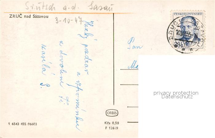 73850137 Zruc nad Sazavou Srutsch Sasau CZ Panorama postalisch gelaufen Erhaltung siehe scans [WerneD78] old postcard Wern Katcode 11520