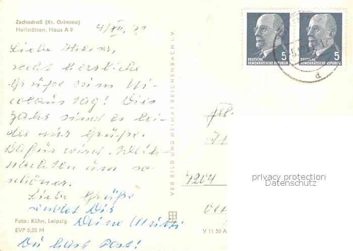 72708599 alte Postkarte Zschadrass Heilstaetten Haus A 9 postalisch gelaufen Erhaltung siehe scans [FriedD77] KatCode: 11110014383350
