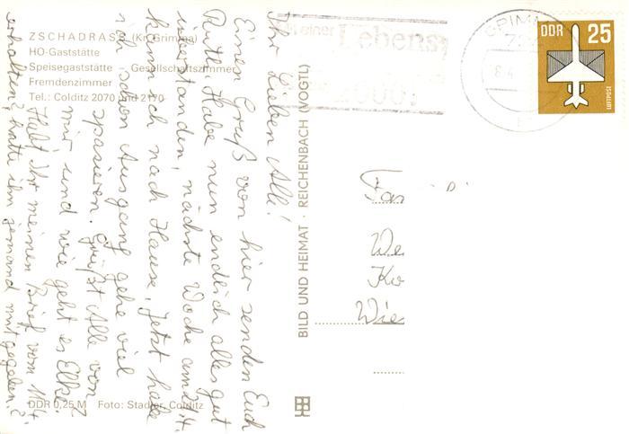 73872311 alte Postkarte Zschadrass HO Gaststaette postalisch gelaufen Erhaltung siehe scans [WerneD78] KatCode: 11110014383350