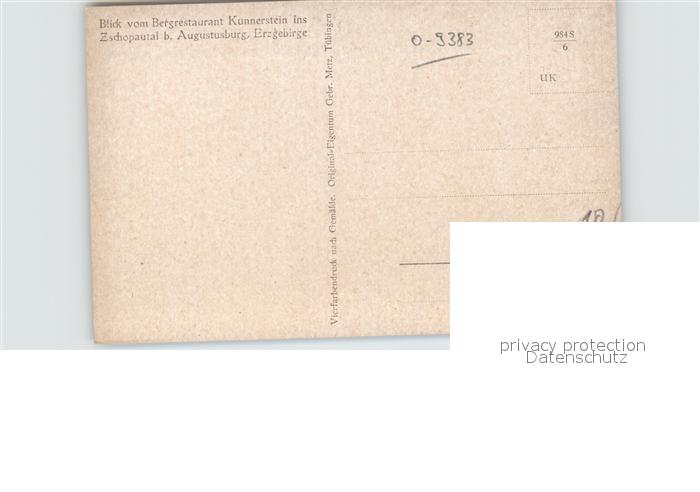 42589565 Zschopautal Blick vom Bergrestaurant Kunnerstein bei Augustusburg postalisch nicht gelaufen Erhaltung siehe scans [LiesaD40] KatCode: 11110014181420