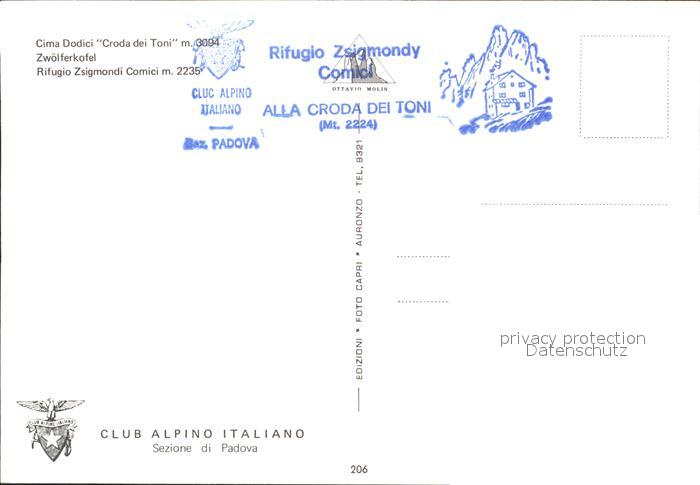 Zsigmondy-Comici Huette Cima Dodici Croda dei Toni postalisch nicht gelaufen Erhaltung siehe scans