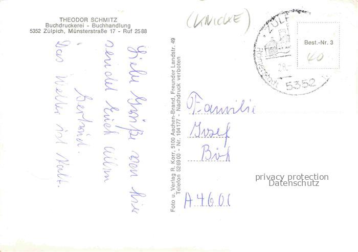 74156588 alte Postkarte Zuelpich Euskirchen NRW Burg Markt-mit-Rathaus Koelntor Stadttor Marktplatz Denkmal Wappen Mehrbildkarte postalisch gelaufen Erhaltung siehe scans [Karloger] KatCode: 11110005366044